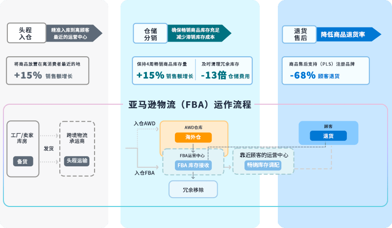 亚马逊物流(FBA)帮助卖家处理商品配送和售后服务,助力卖家更好地拓展业务。