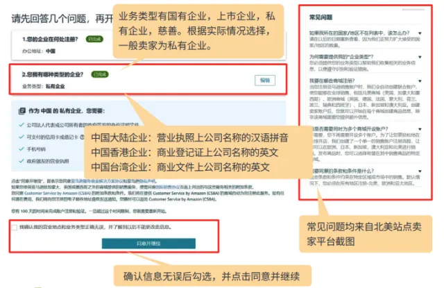 ● 根据实际情况,选择业务类型,可选国有企业、上市企业、私有企业或慈善机构,一般卖家为私有企业。