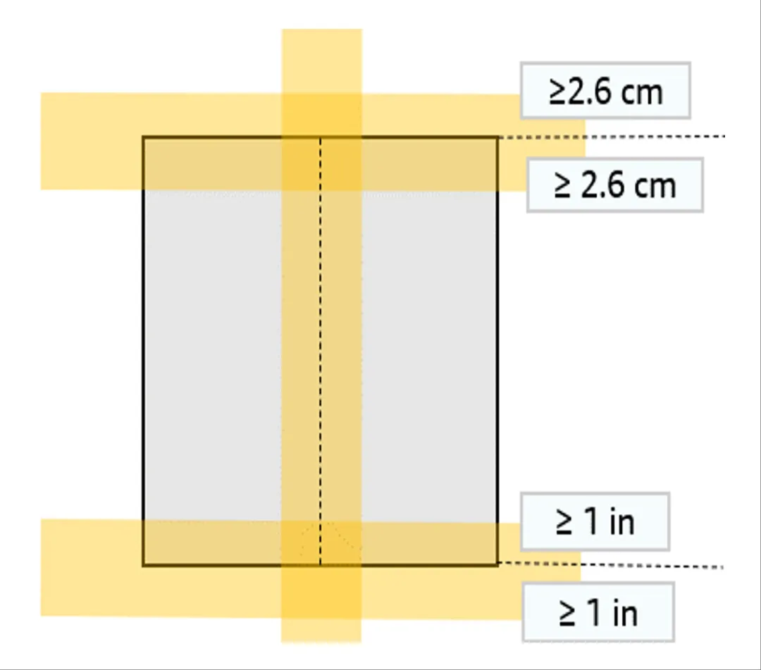 🌟 对于中心接缝,胶带必须与相邻箱盖重叠至少2.6厘米(1英寸)