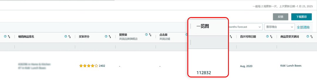 自身的ASIN详情页面的查看次数(浏览量),也可以通过一览图获知。