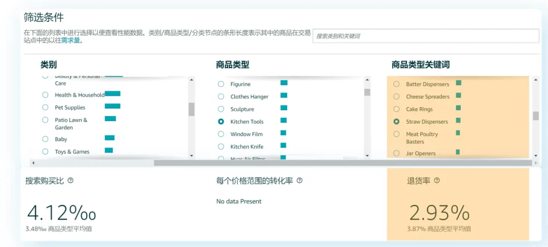 关于退货率,卖家可以参考当前站点的选品指南针来预估退货率,通过这个工具,可以查看产品类目的退货率情况。