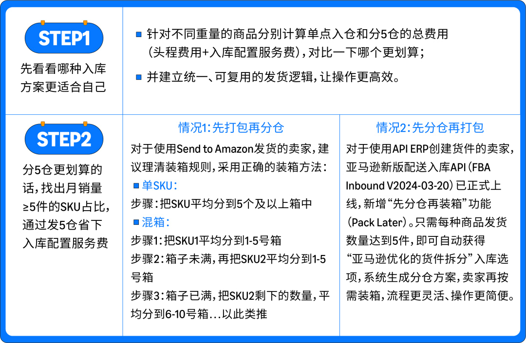 为此,亚马逊针对性帮助卖家找到入库成本优化突破口,让卖家既能提升入库速度,又能省下不必要的开支。具体可以这样做:
