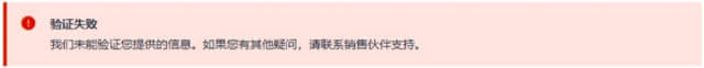 ● 若审核失败,将出现此⻚⾯,您可联系销售伙伴⽀持: